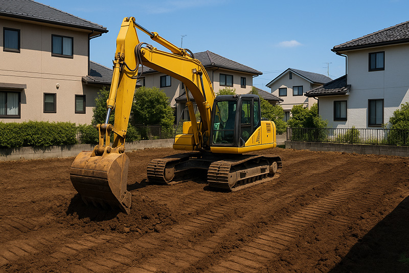 造成工事、盛土、整地など土地の広さ・形状に関わらずおまかせください。着工から完成まで安全第一で、施工管理者が責任を持って施工いたします。